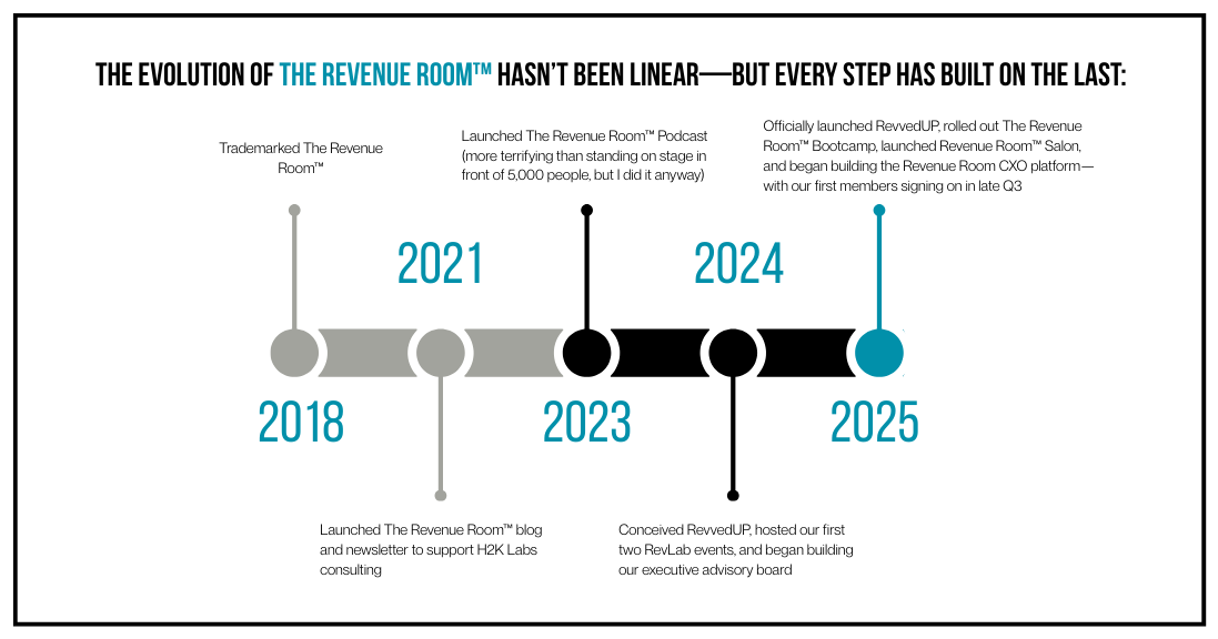 The Revenue Room™ has grown from a single idea into a platform, a community, and a movement. If you’re a CEO or a revenue-critical leader navigating the intersection of data, AI, and growth, I’d love for you to be part of what’s next. Follow this newsletter, join us at RevvedUP, or explore Revenue Room™ CXO. Because the future of growth won’t be written by chance—it will be written in the war room.