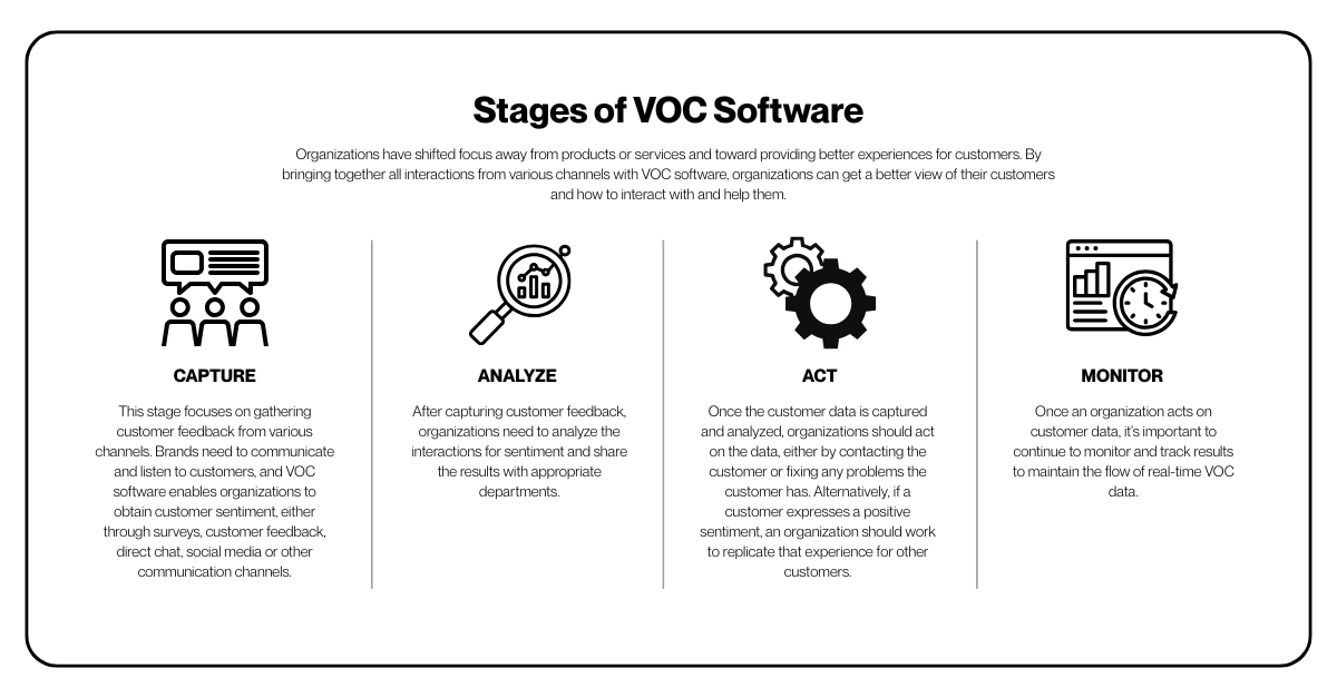 VOC tools are software applications organizations can use to collect and analyze customer feedback so they can improve the customer experience.